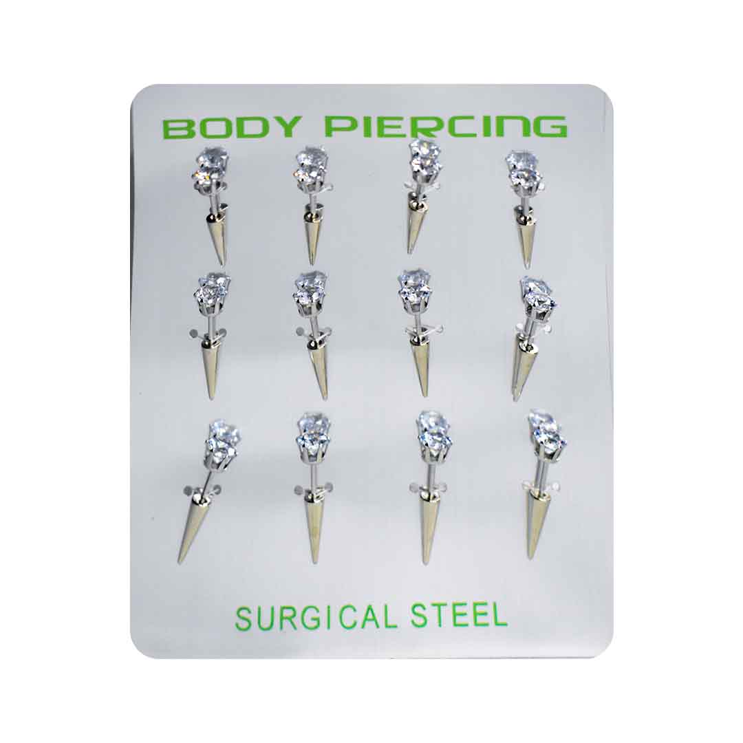 Body piercing plateado de púas en blister cromado