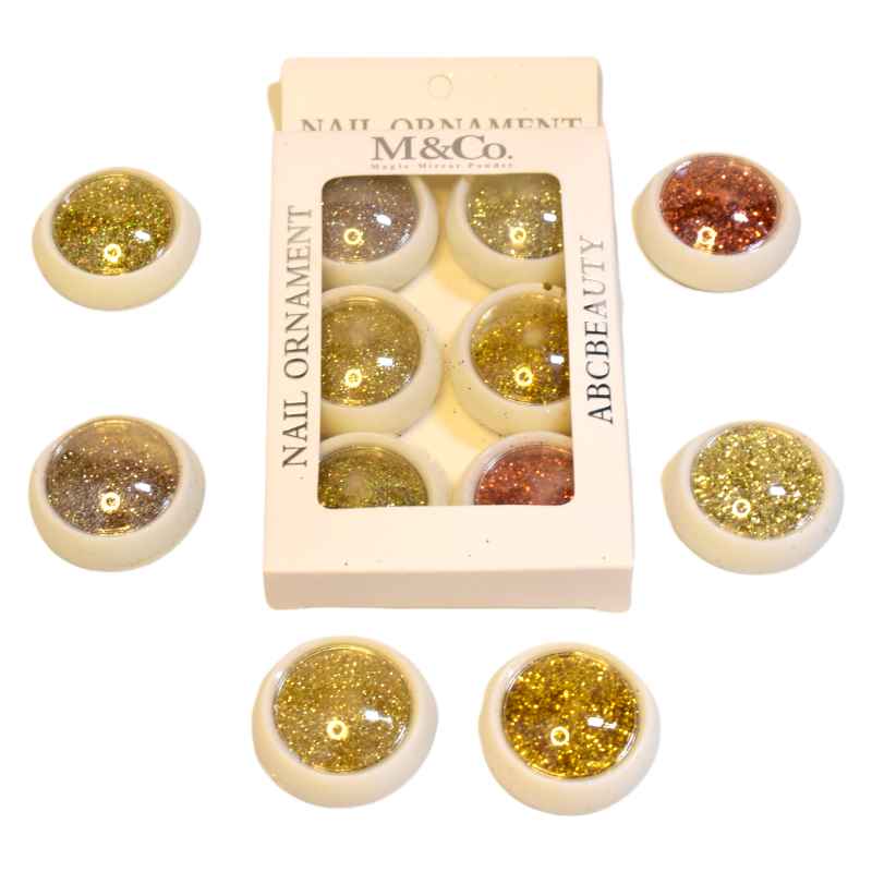Decoración de uñas brillantina colores ocre myco 6u caja blanca