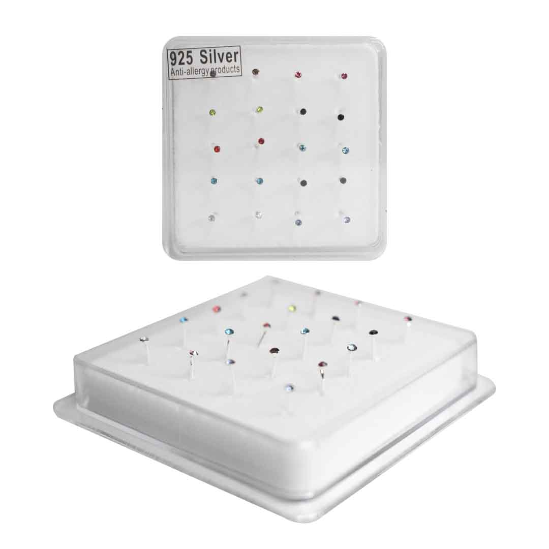Piercing nasal de plata con diseño de perla colorida pequeña