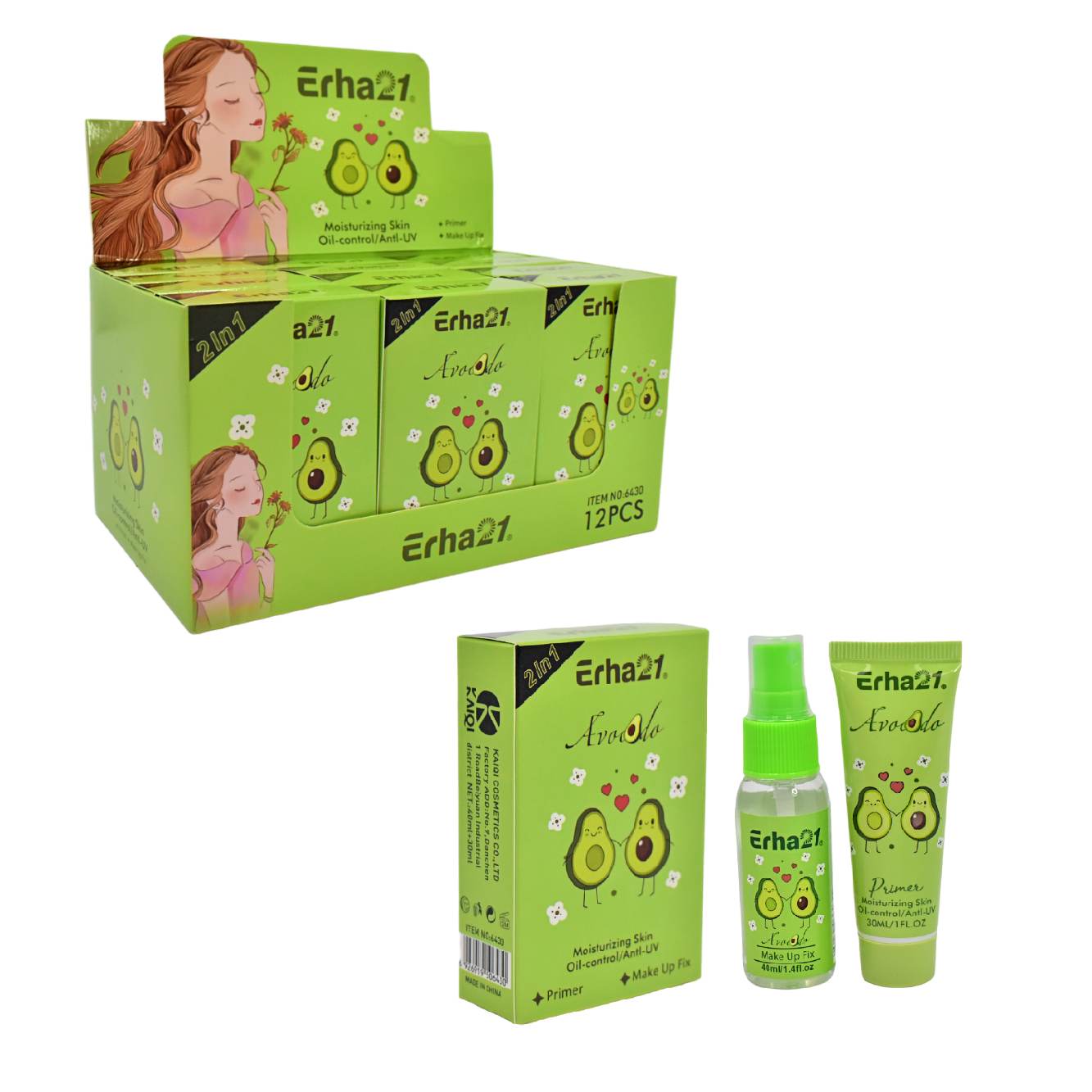 Primer y fijador de maquillaje en presentación de aguacate, Erha21 2 en 1