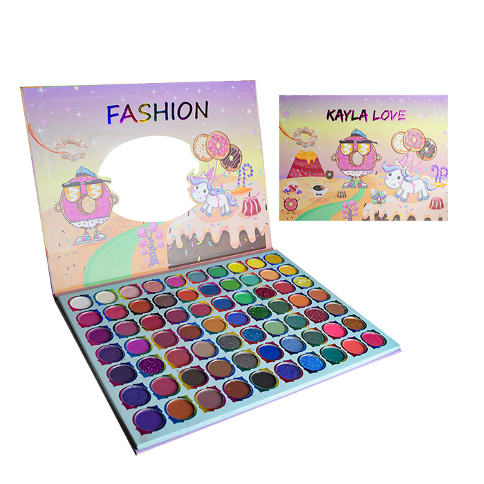 Sombras Kayla Love en su presentación Fashion con donas y unicornios contienen 70 tonalidades con excelente pigmentación, son ideales para crear maquillajes naturales y sofisticados. Su variedad de colores matte y glitter las vuelven la favorita de todas.